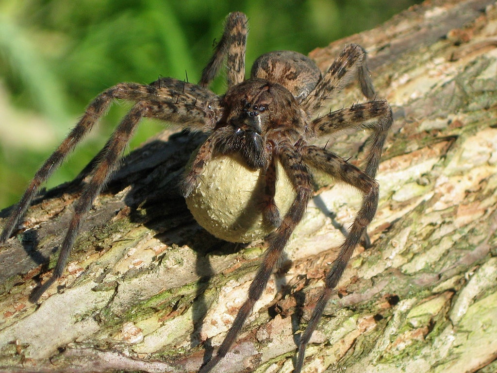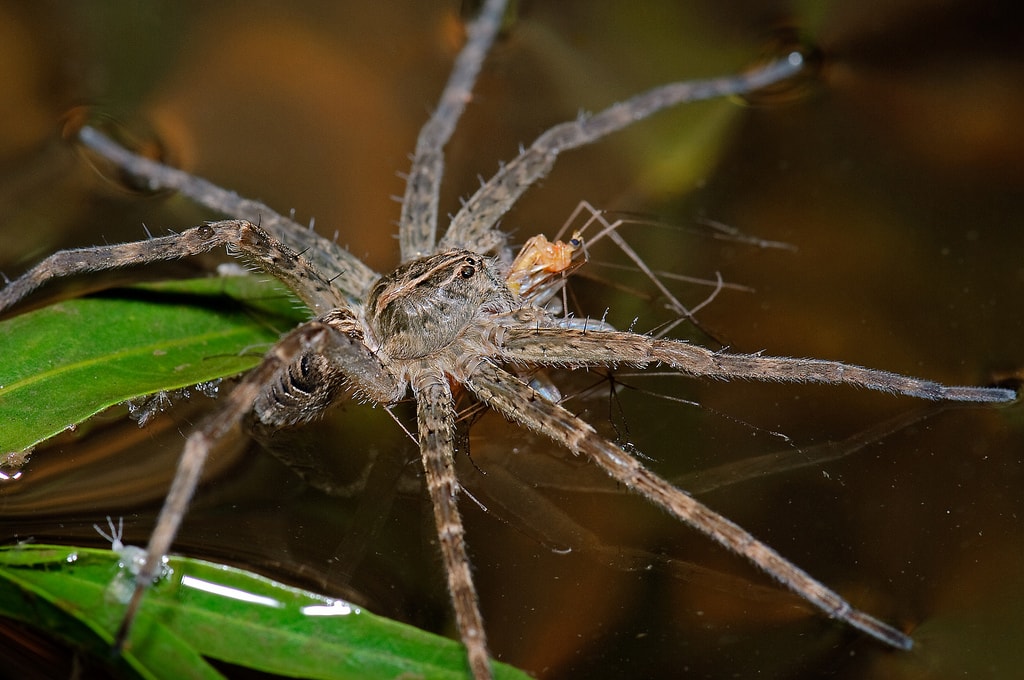 Araignées géantes (Dolomedes tenebrosus) : Des araignées géantes qui font les poids lourds avec les tarentules? Oui, les Dolomedes se trouvent également Amérique du Nord. Au Québec, la Dolomedes tenebrosus envahit les cours d’eau avec leurs sacs d’œufs dès le début du mois d’août.